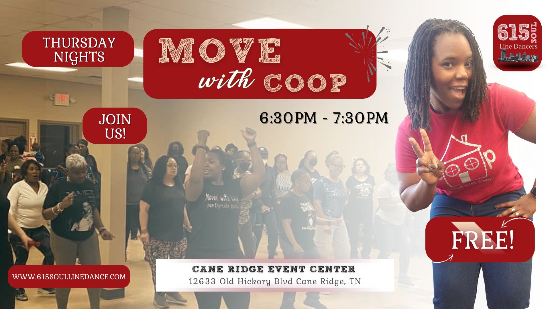 Random facts? Coop thrives in a good circle dance, still loves throwing down to STL Flava Madness, and is always ready for a themed line dance party! With Move with Coop, she brings a unique twist to soul line dance classes in Nashville, incorporating Line Dance Karaoke & Roulette, creative themes, and even trail-riding fan-popping fun!